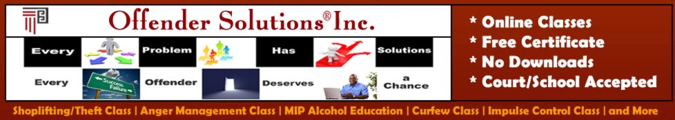 Is a school, court or probation officer requiring you to take a class? We offer a variety of 100% online classes. Yes, our classes are Offender Solutions® - the premier provider of California online theft / shoplifting Classes! |