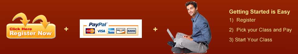 Pay for your class online with VISA or PayPal after you register or you can mail us a check or money order.